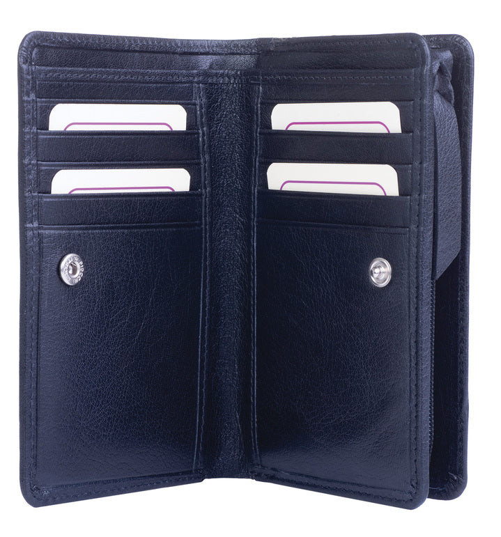 This neat Bifold purse has plenty of room for change and holds up to ten cards. There's a note pocket within the card section and two useful slip pockets to hold receipts or stamps.