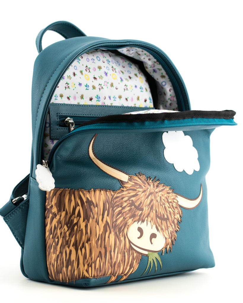With adjustable shoulder straps and a very useful carry handle, this backpack is a cow lovers dream.