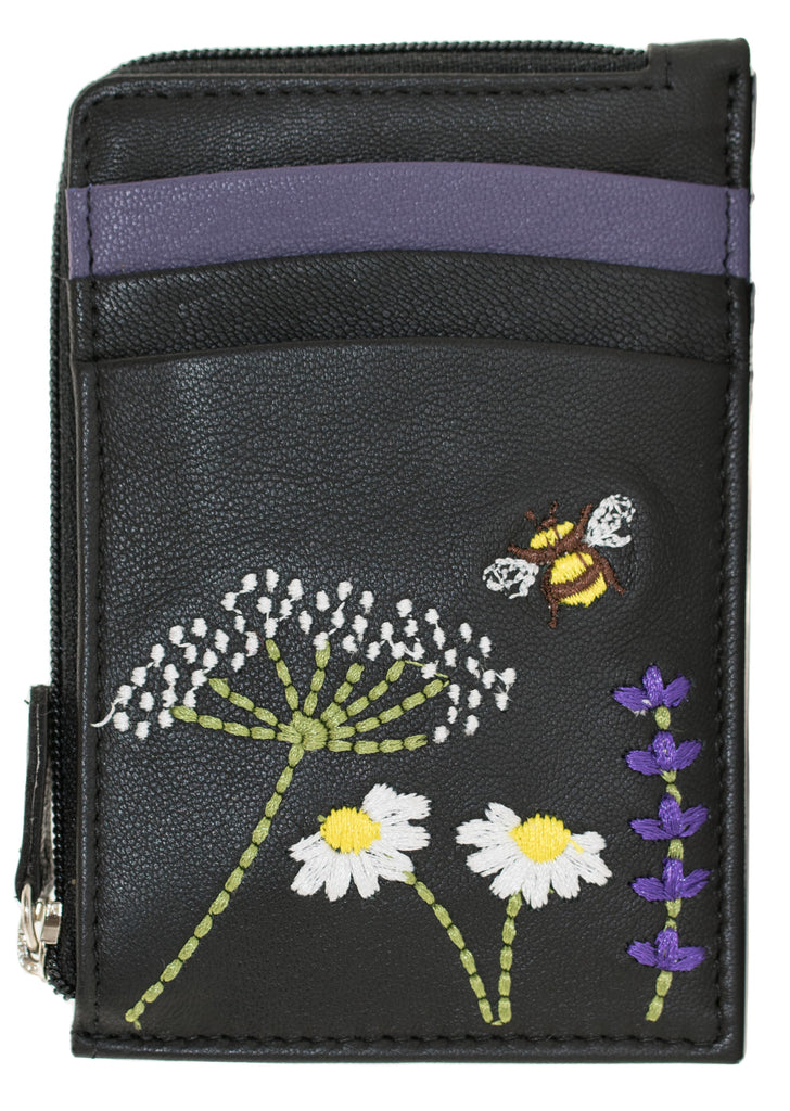 Created from genuine leather and decorated with beautiful embroidered flowers and bee.