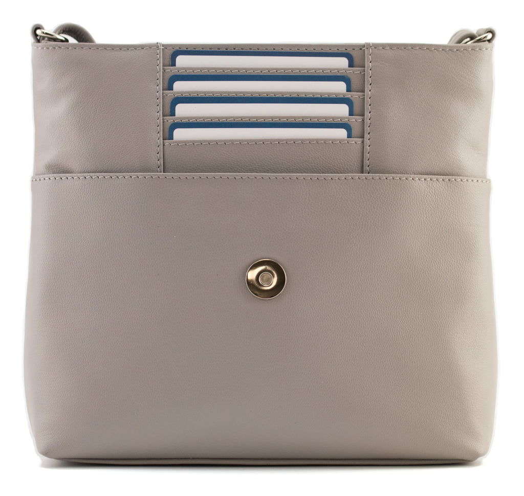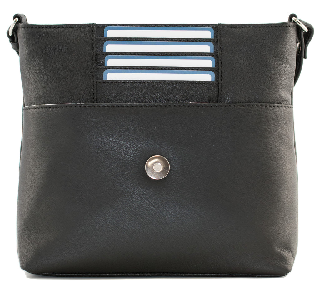 Under the front flap there's 4 card slots and a large slip pocket. Inside the main compartment there's a large slip pocket and secure zipped pocket.