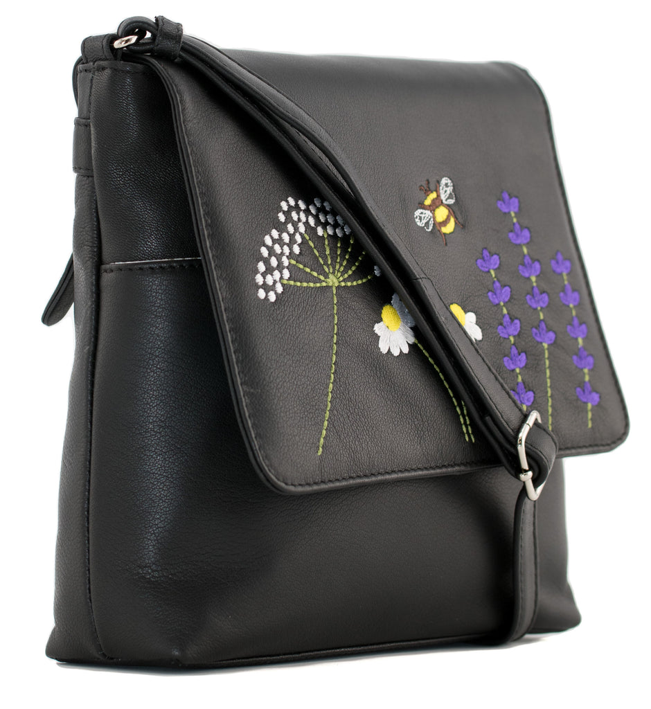 Compact and lightweight, this adorable embroidered bee cross body bag has been created from genuine soft leather.