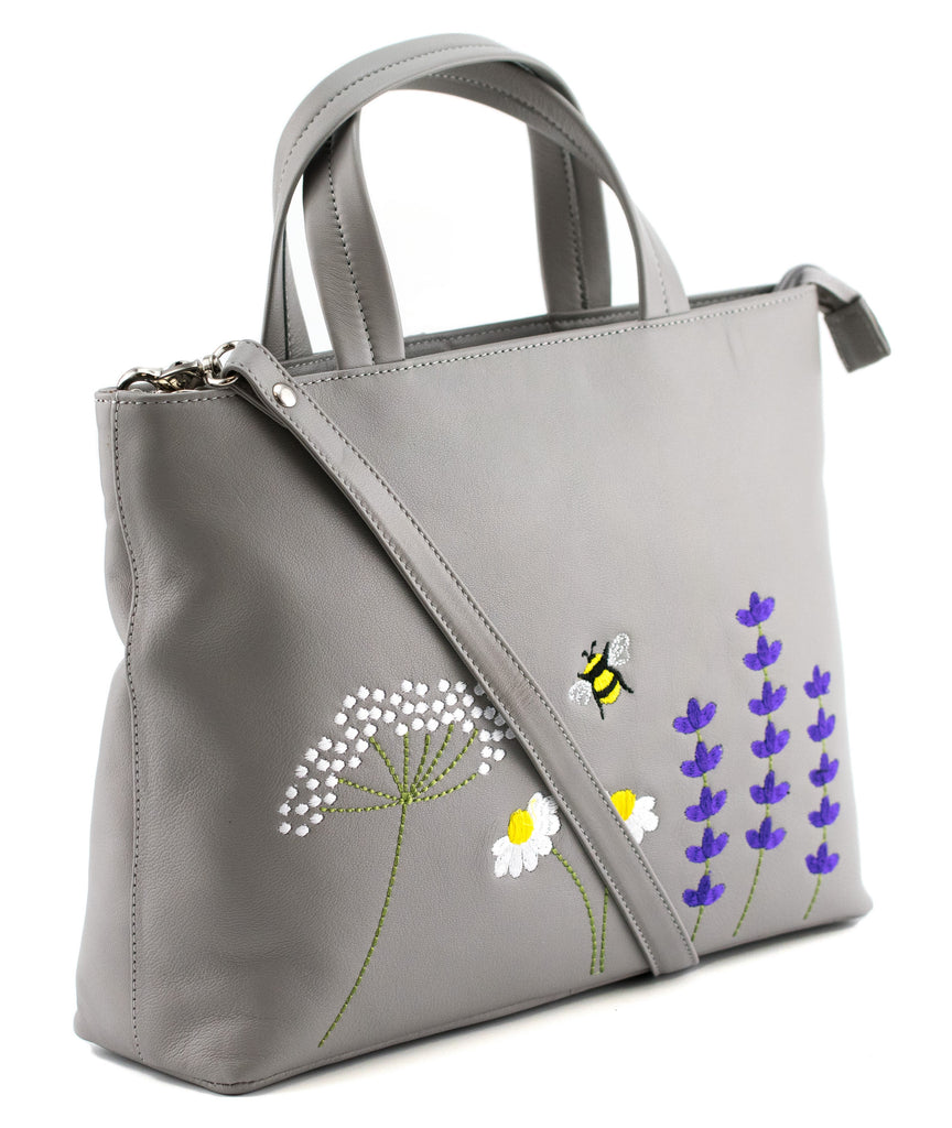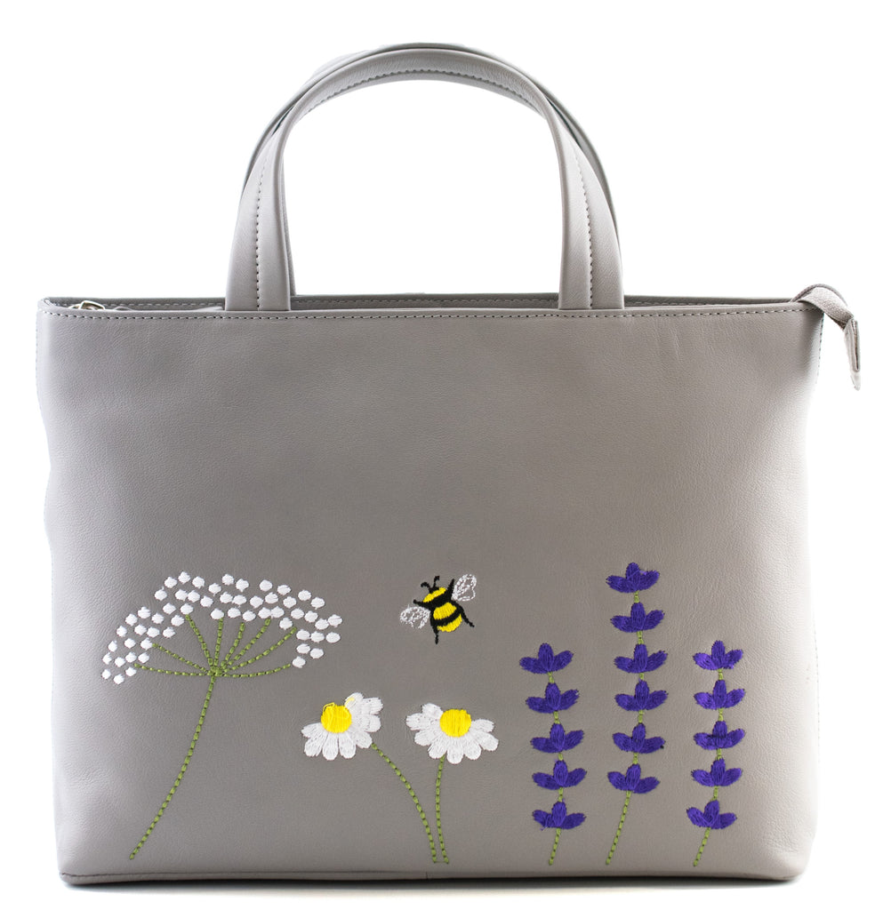 The ideal everyday bag that will carry you through to the evening. The pretty embroidered flowers and bee add character and the useful external pocket is ideal for your phone.
