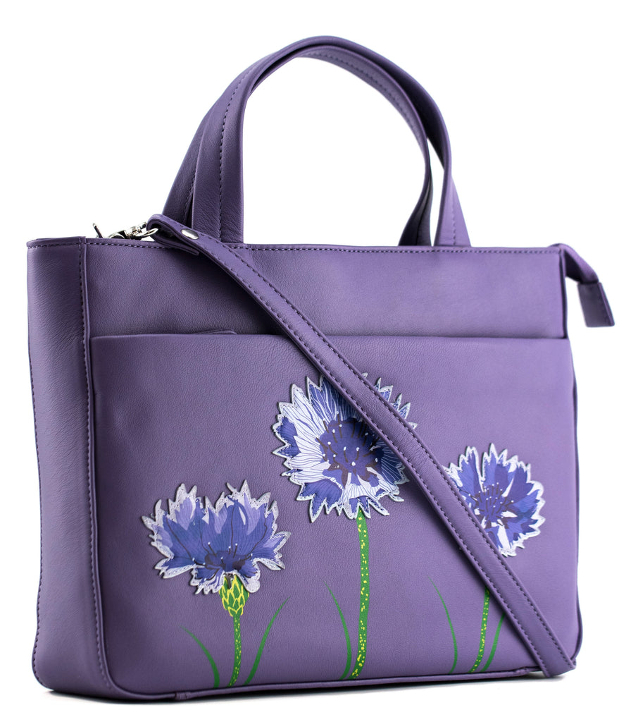 Perfect for work or leisure, this attractive cornflower grab bag comes with a detachable shoulder strap and is surprisingly lightweight .