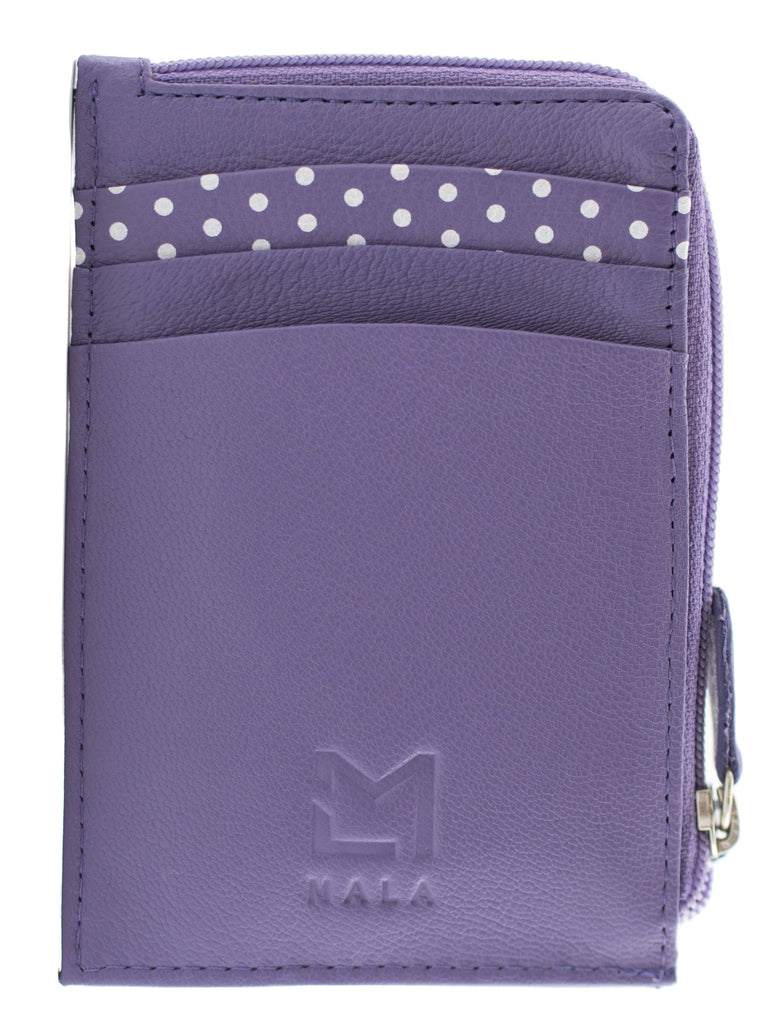 On the back of the purse there's 3 card slots and the zip opens on 2 sides allowing easy access.