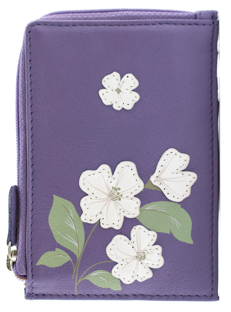 Simple and slim, this attractive Japanese applique flower coin purse will fit in your pocket and the smallest of bags. Handcrafted from soft leather and holds your loose change and cards all together.
