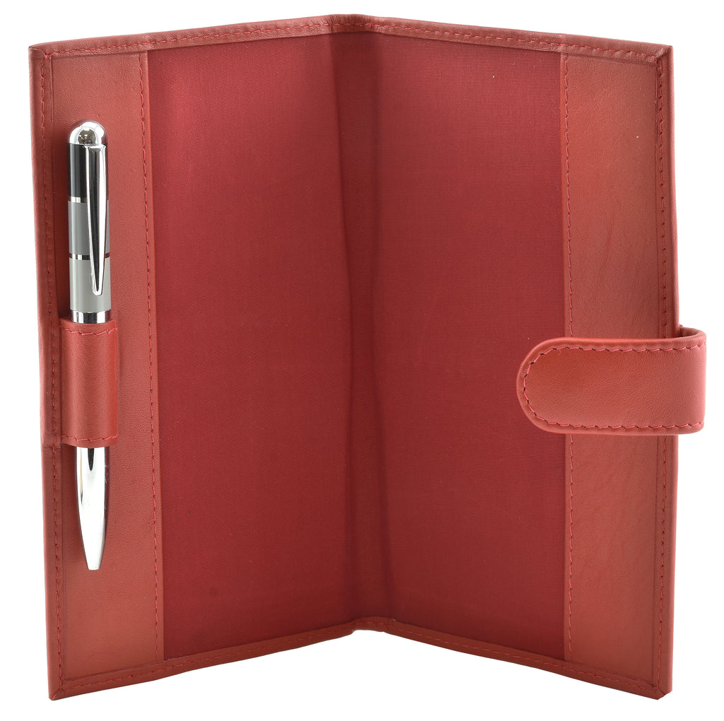 The outer is 100% genuine leather and the inner has a useful pen holder.
