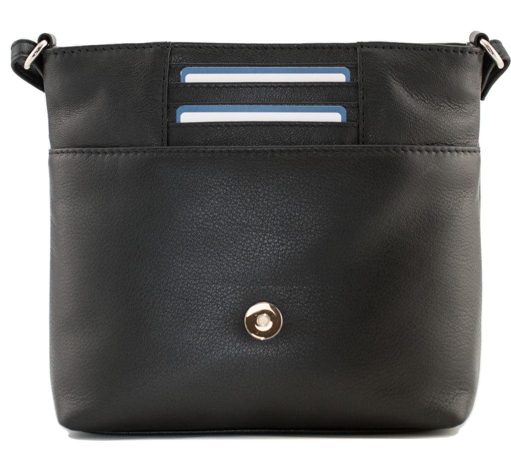 Under the front flap there's 4 card slots and a large slip pocket. Inside the main compartment there's a large slip pocket and secure zipped pocket.