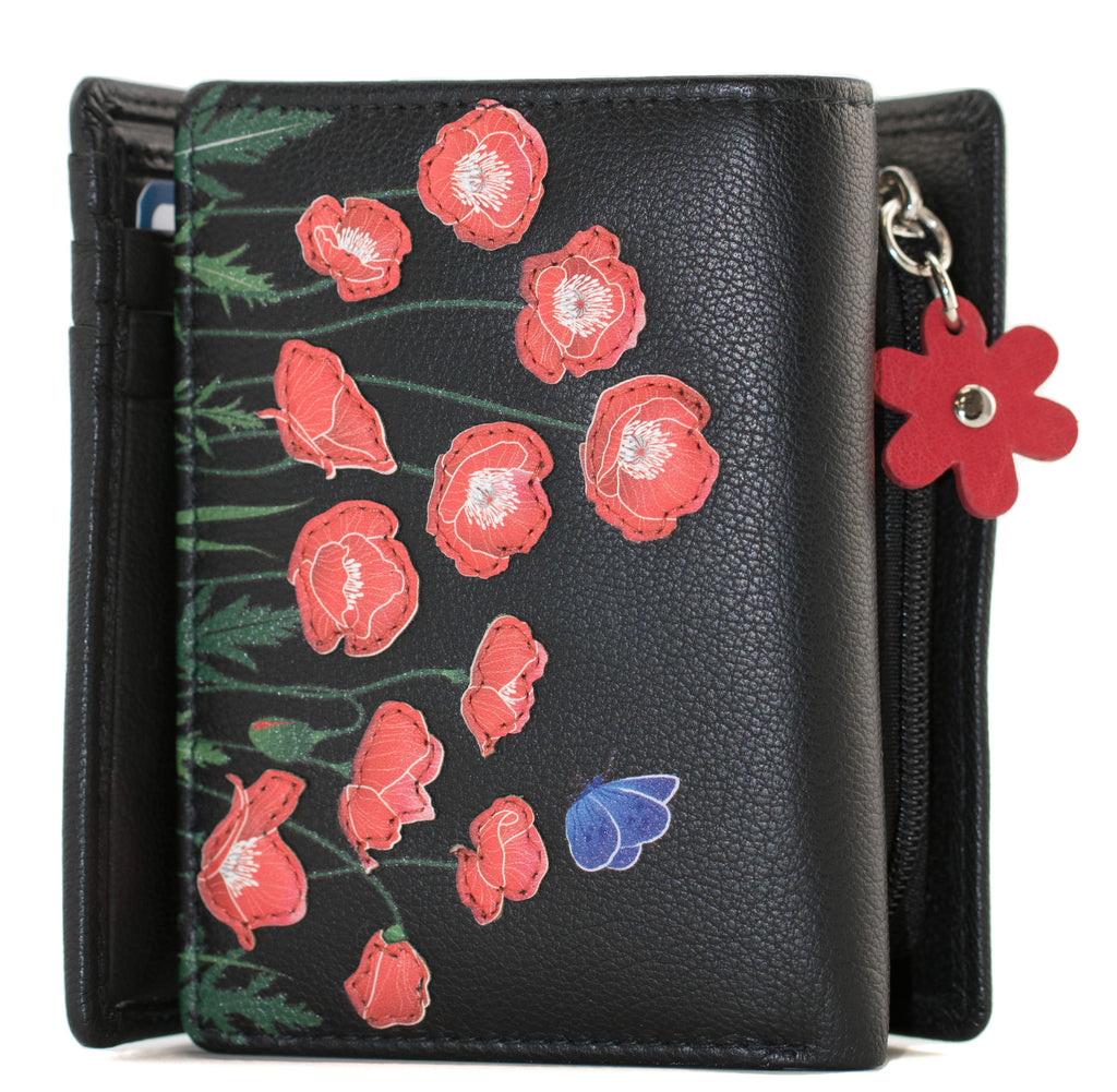 Perfect for small bags, this poppy motif purse is compact and holds up to 9 cards. There's a spacious note compartment, internal ID window, 2 slip pockets ideal for receipts and external zipped change compartment.