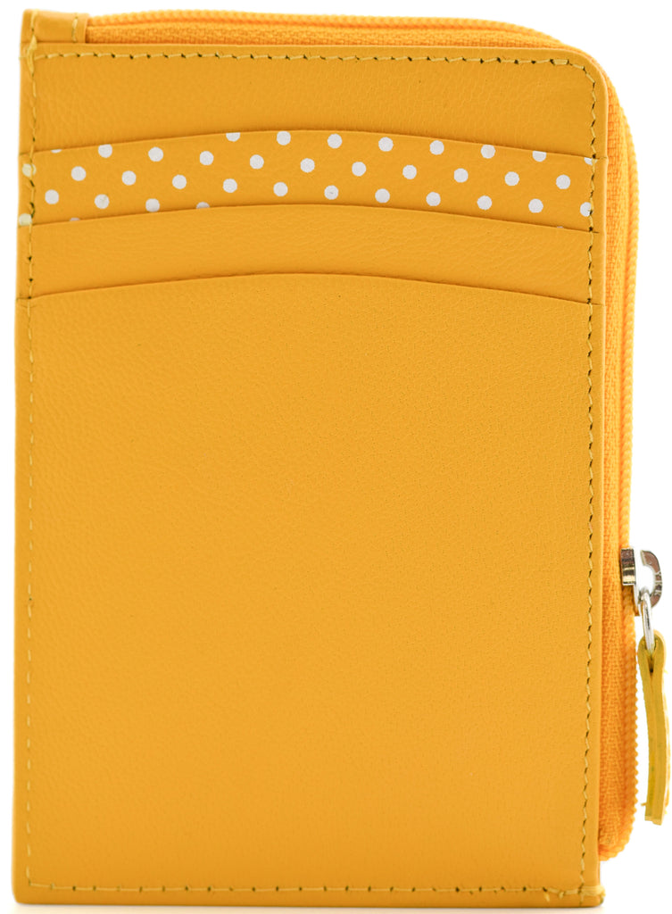 Slim and compact, this simple coin and cardholder is ideal for very small bags or to fit into your pocket. The outer holds 6 cards and the curved zip allows easy access to your loose change. Packaged in a dust bag.