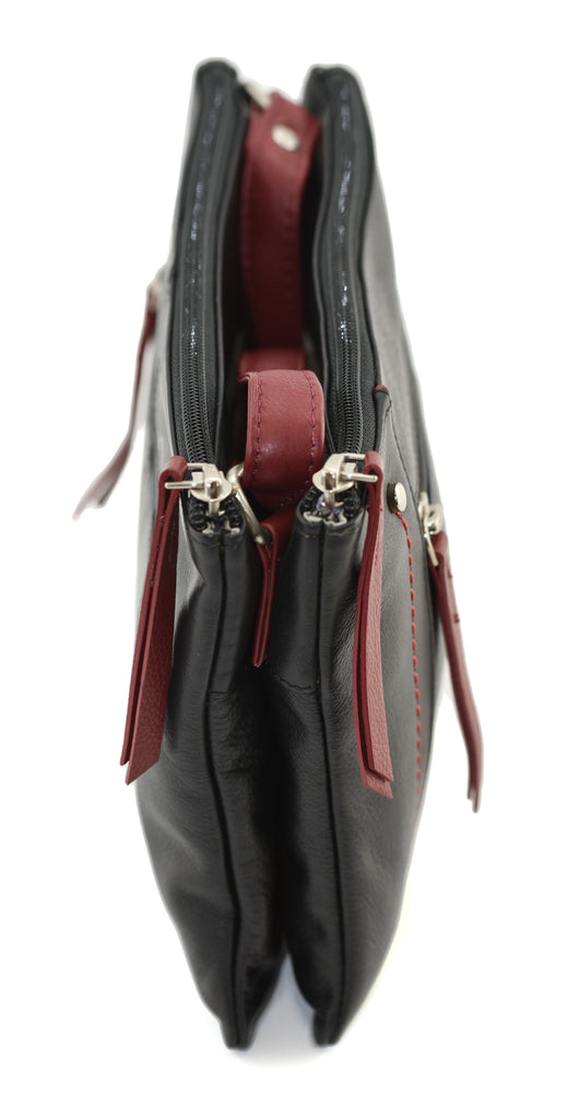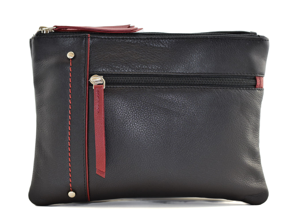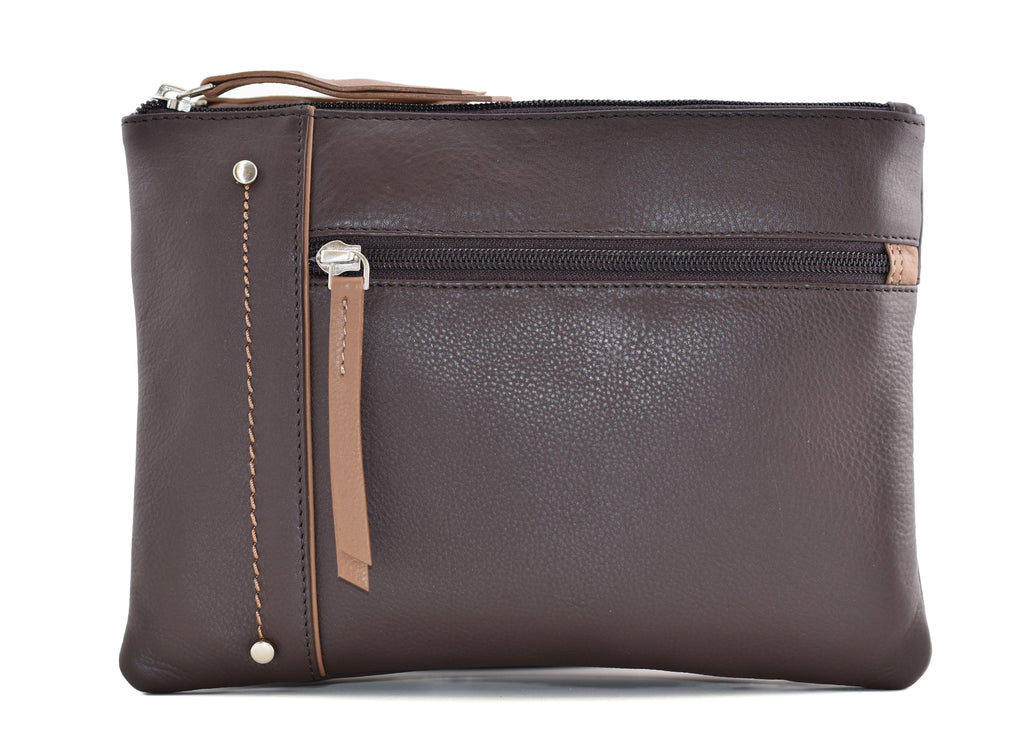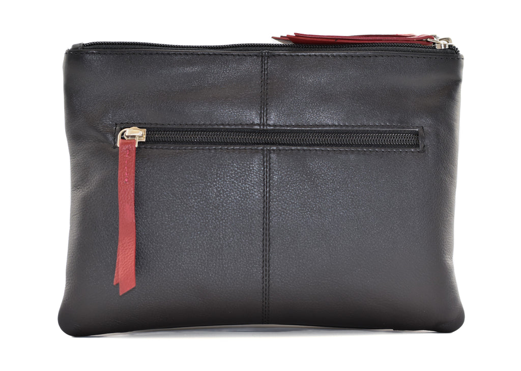 Sophisticated and crafted from luxury soft leather, this slim double pocket bag can be worn on the shoulder or as a cross body.