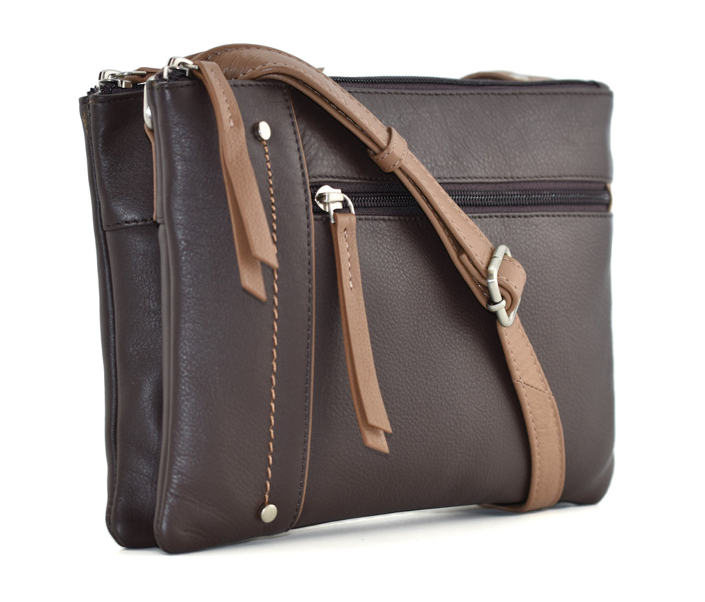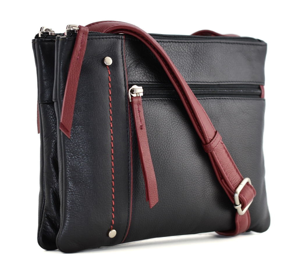 The double pockets are ideal to keep your personal belongings separate and the useful slip pocket is ideal for quick access items. On the outside there's two zip pockets and the strap has an adjustable slider.