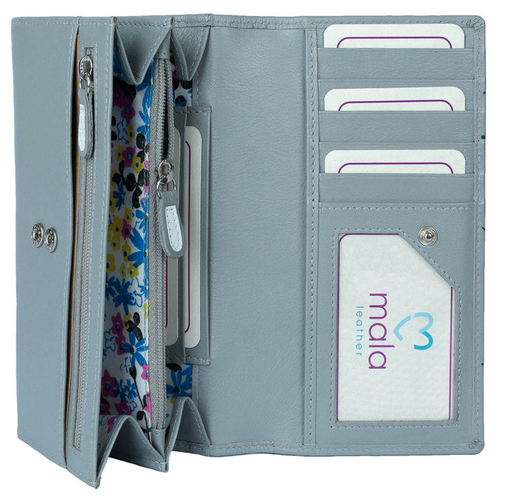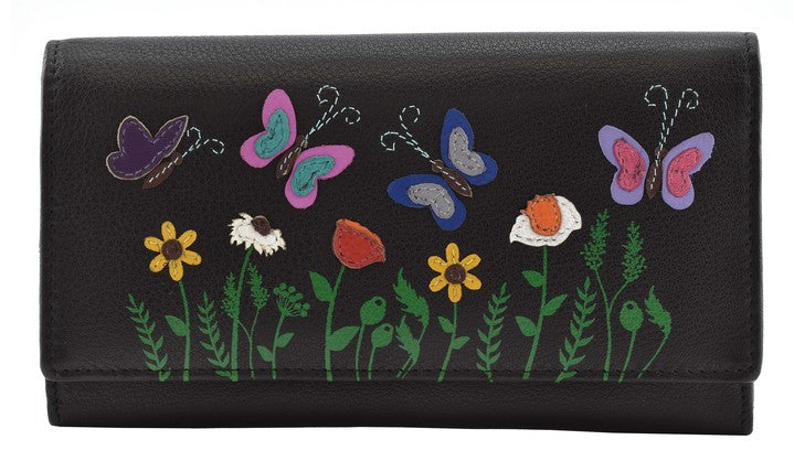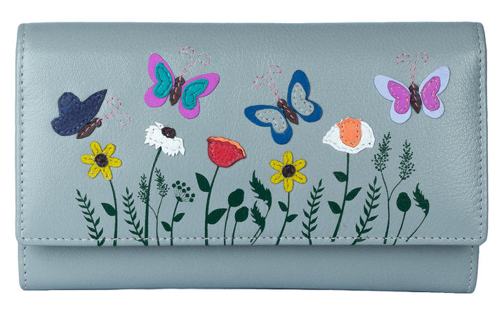 This pretty butterfly leather purse holds up to 8 cards and has two separate note sections. The internal zipped pocket holds change securely and the ID window is ideal for passes.