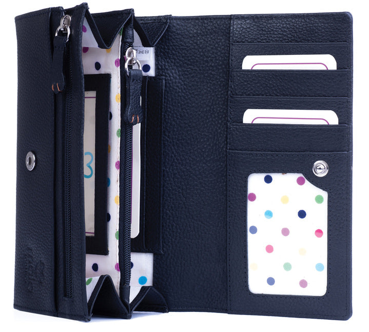 This super soft leather matinee style purse is fun and very practical. Handcrafted from premium leather, this purse holds bank notes, numerous cards, coins and has a useful ID window for passes. This purse consists of RFID protection which guards against unauthorised devices when closed.
