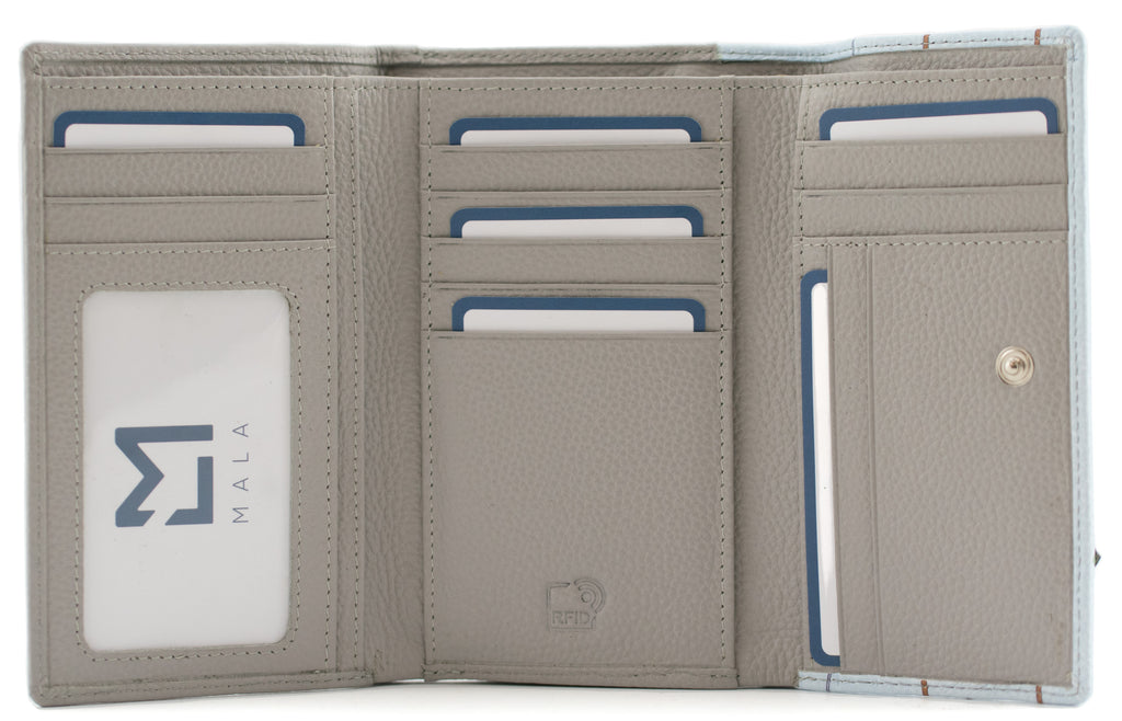 This appliqued baking scene tri fold purse holds up to 12 cards individually, has a spacious note section and an ID window for passes. Inside you'll find 3 hidden slip pockets ideal for receipts and a separate zipped change compartment on the back of the purse.