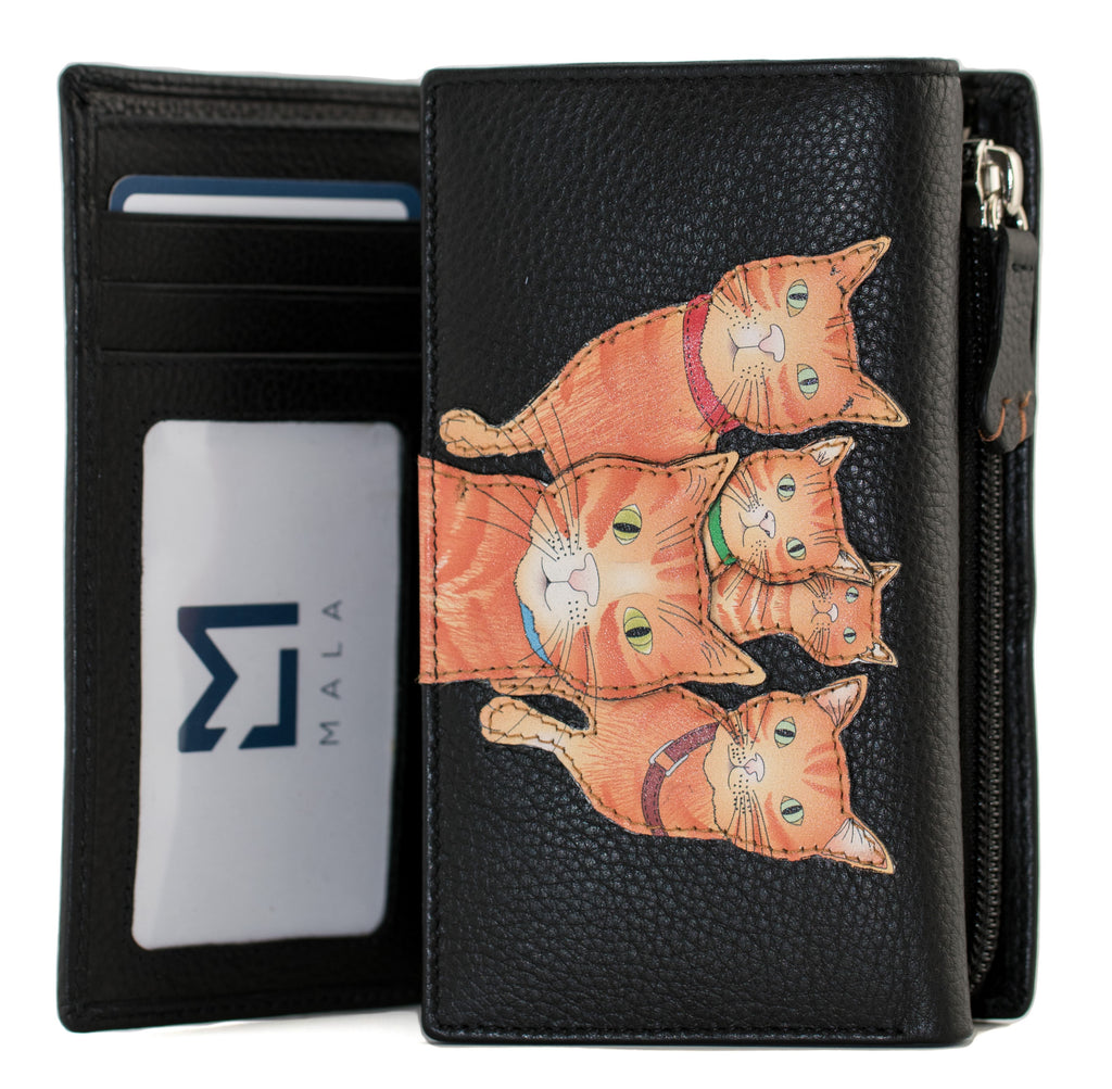 Holding up to 12 cards, this adorable cat tri-fold purse has a large note section and RFID protection. The generous zipped change compartment has two sections to separate coins. Within the card section there's an ID window and four useful slip pockets ideal for receipts.
