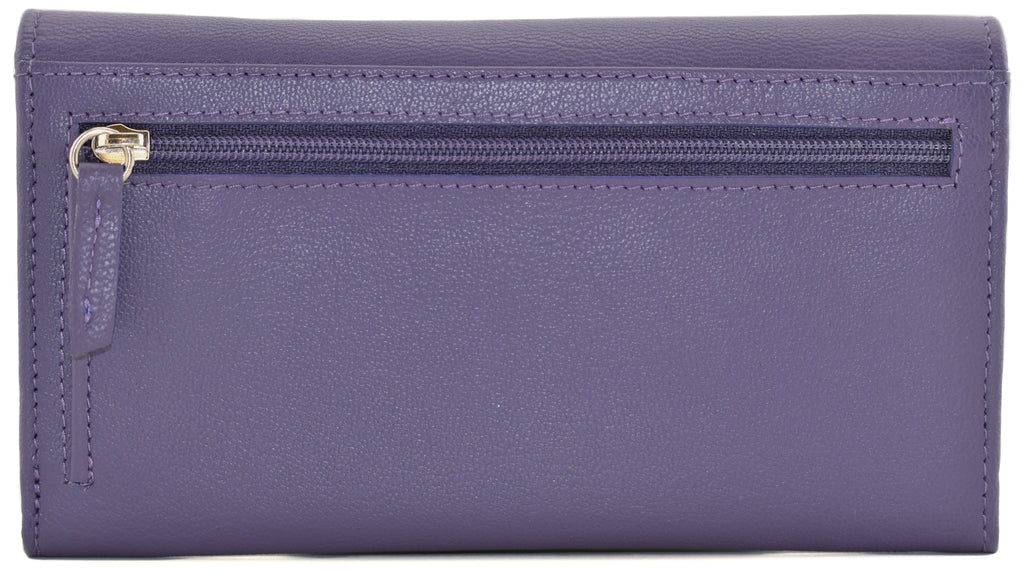 Slim and compact, this genuine leather appliqued butterfly purse holds up to 8 cards, has 3 zipped compartments, an ID window and 2 slip pockets. Packaged in a dust bag.